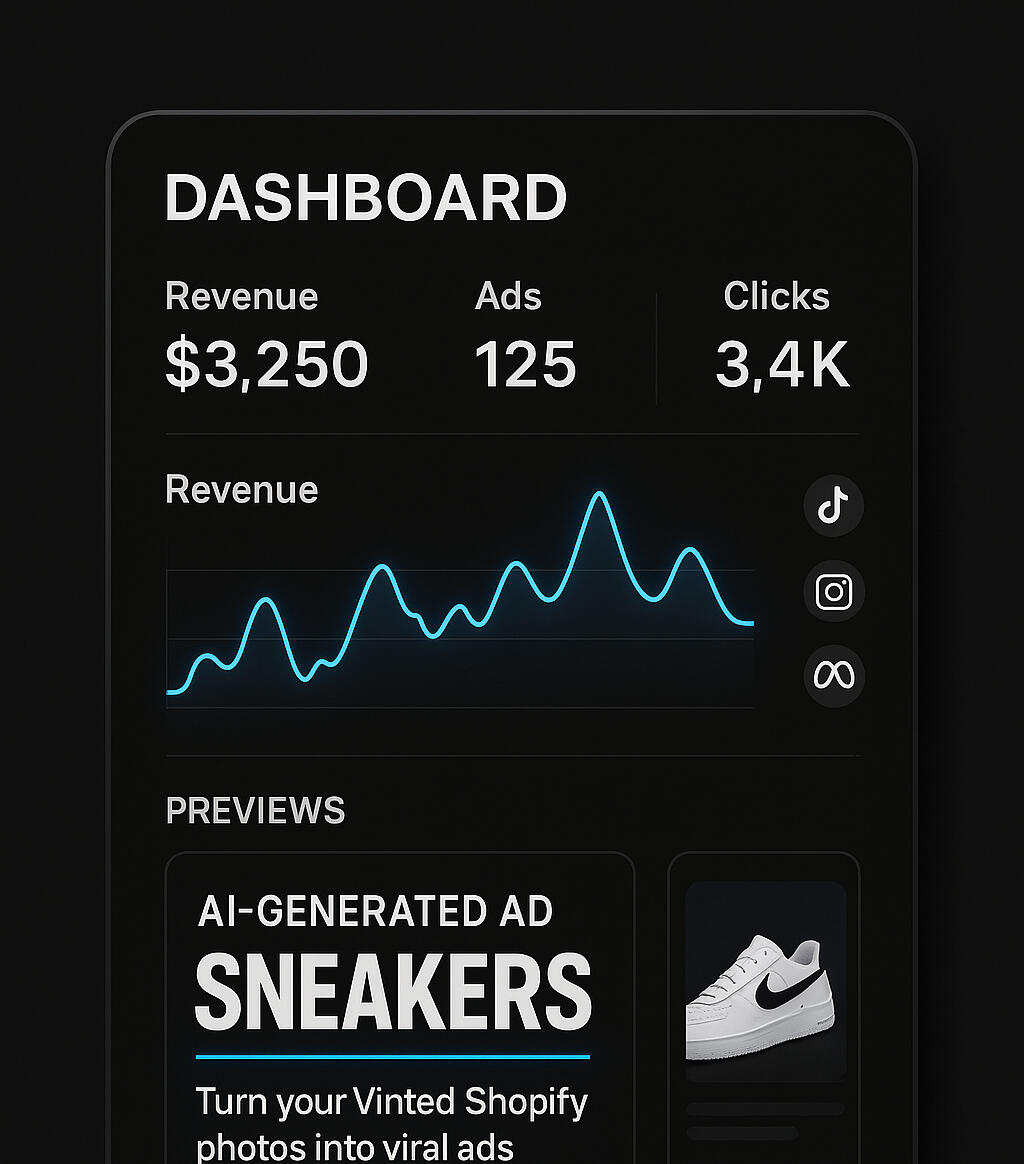Generate ads for Shopify, Vinted, and TikTok — and turn your time into revenue.